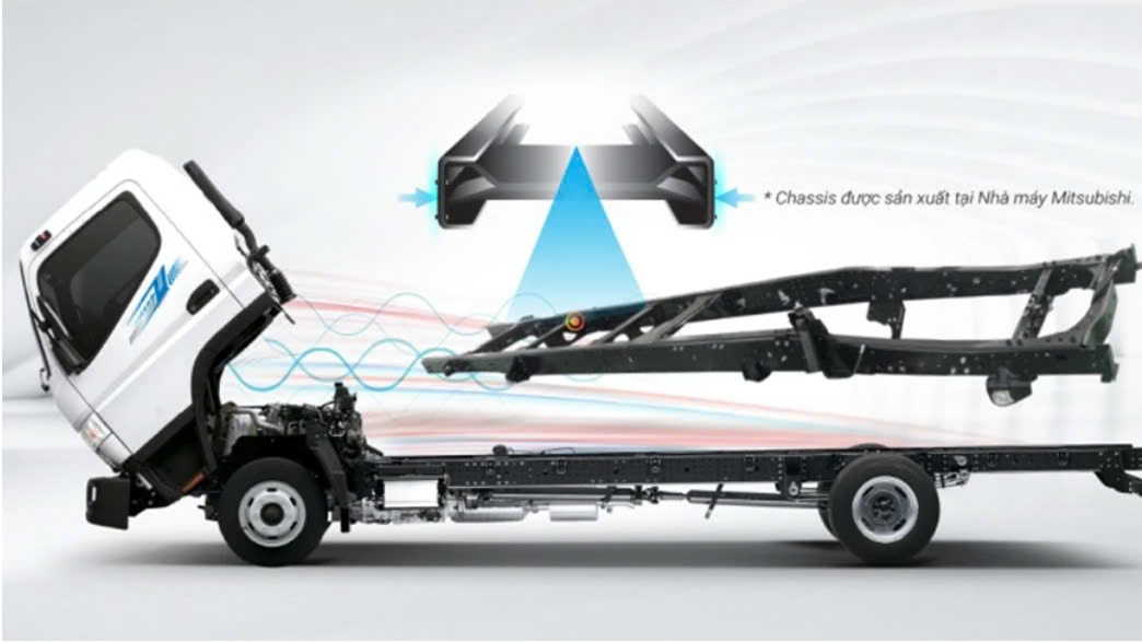 Công nghệ Chassis SUPER FRAME – Công nghệ độc quyền của Mitsubishi – Nhật Bản với khung chassis được gia cố và liên kết nhằm tối ưu hóa độ cứng xoắn và khả năng chịu tải. Sản phẩm được sơn nhúng tĩnh điện toàn phần gia tăng khả năng chóng gỉ sét, bền bỉ theo thời gian.