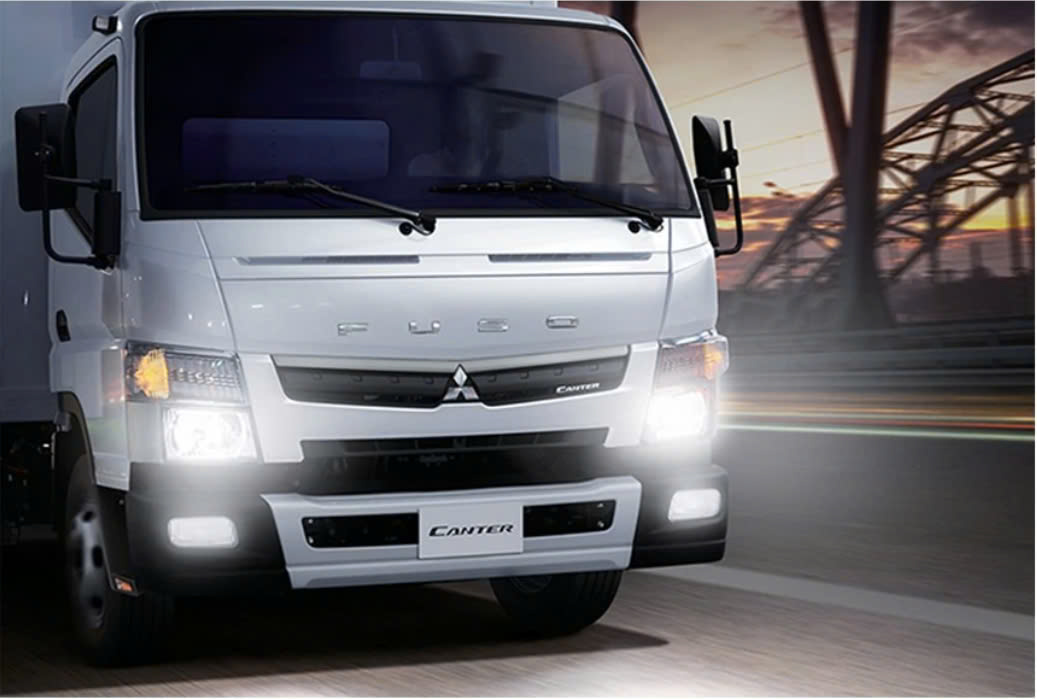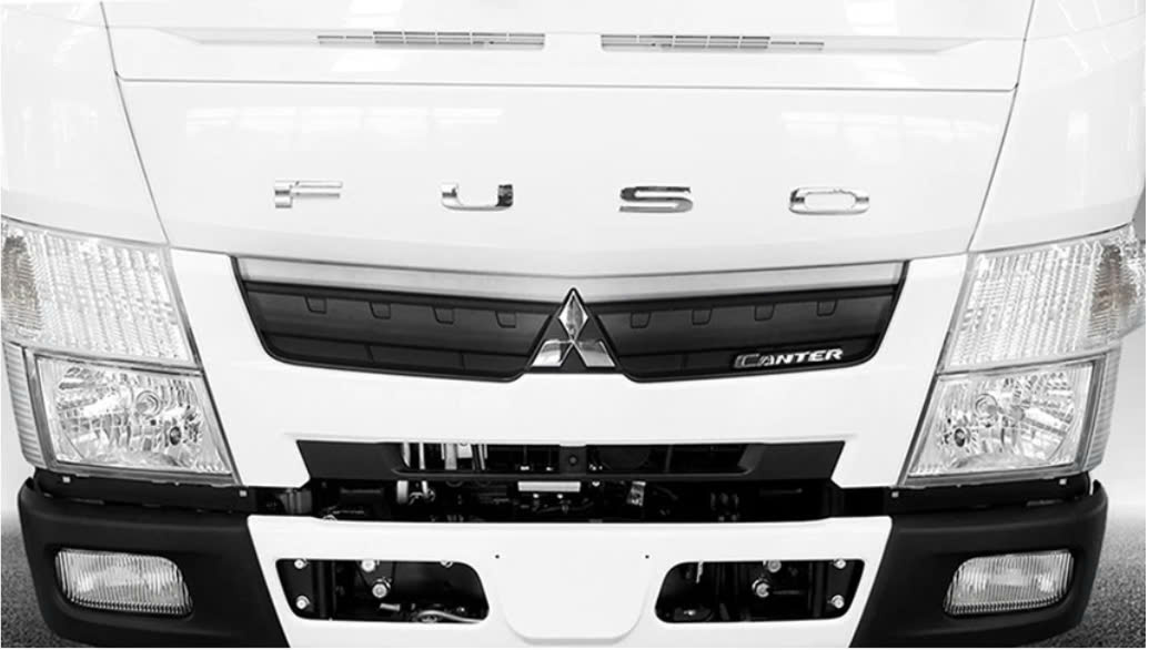Logo Mitsubishi Fuso mạ Crom nổi bật. Cản trước trang bị đèn sương mù.