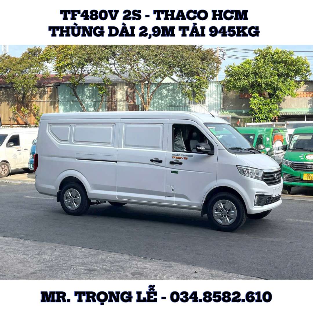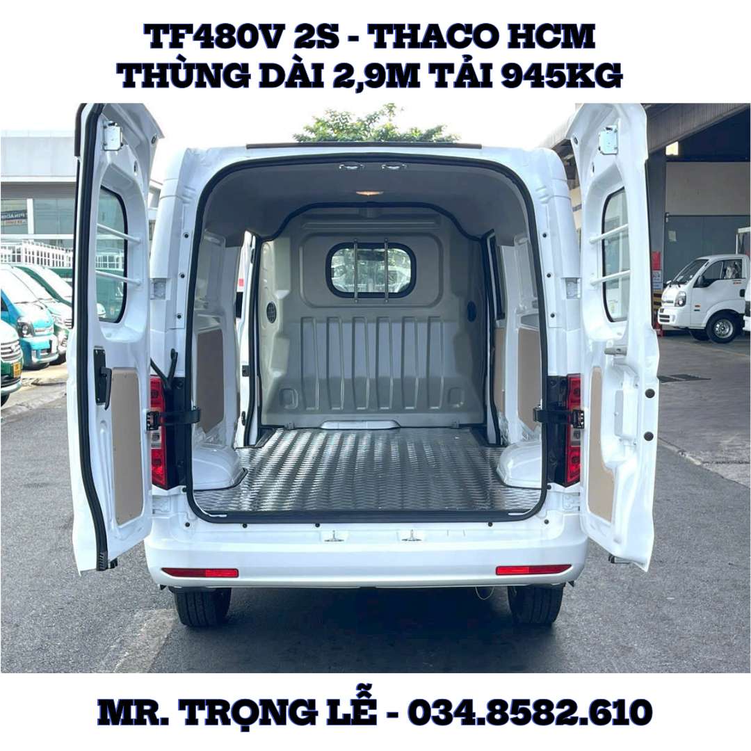 Hiện tại giá xe Van Thaco TF480V 2S thùng dài 2m9 tải trọng 945 kg niêm yết tại TP.HCM là 329 triệu. Quý khách vui lòng gọi 034.8582.610 để nhận giá lăn bánh chính xác nhất và biết thêm về các chương trình khuyến mãi hiện đang có tại showroom